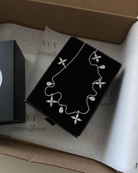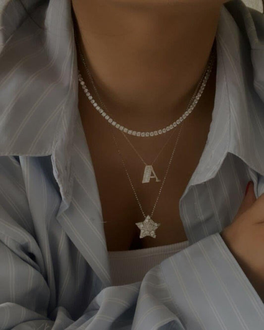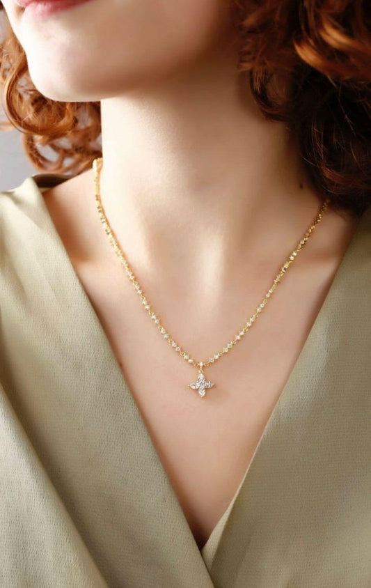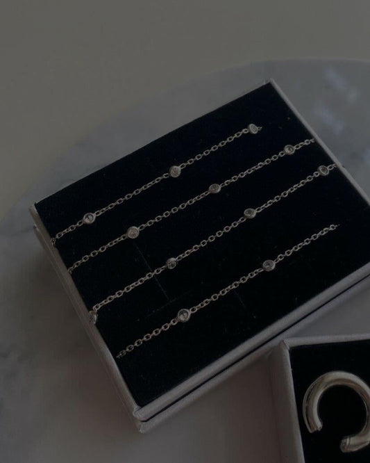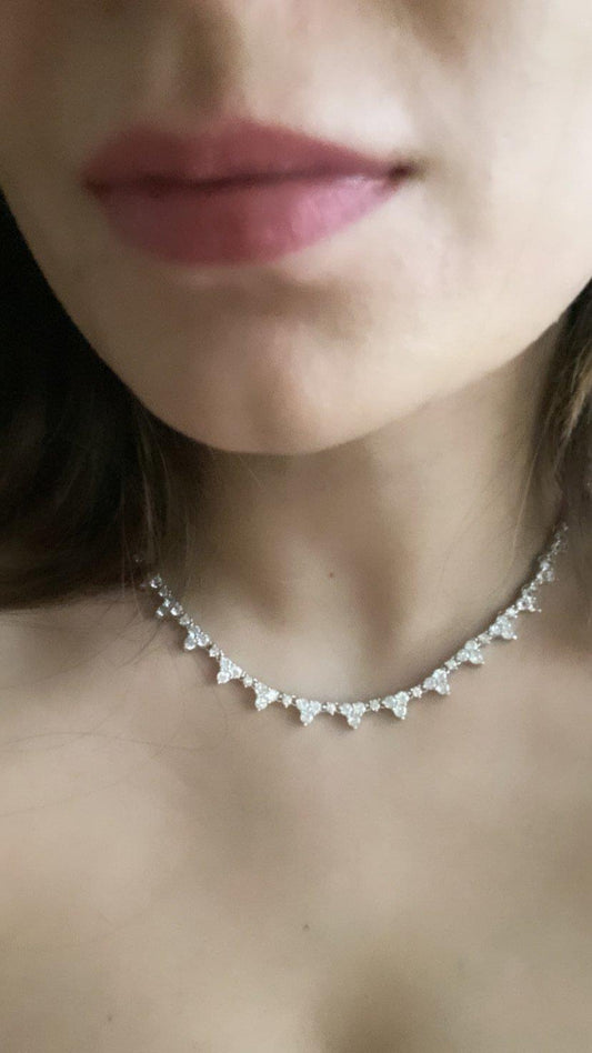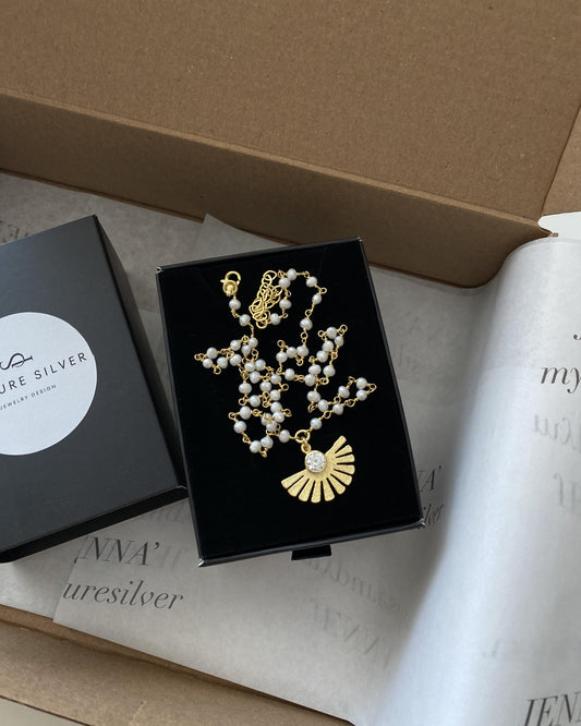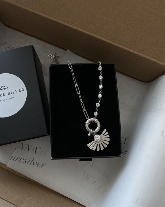 Yarısı Taşlı Zincir Yelpaze Kolye
