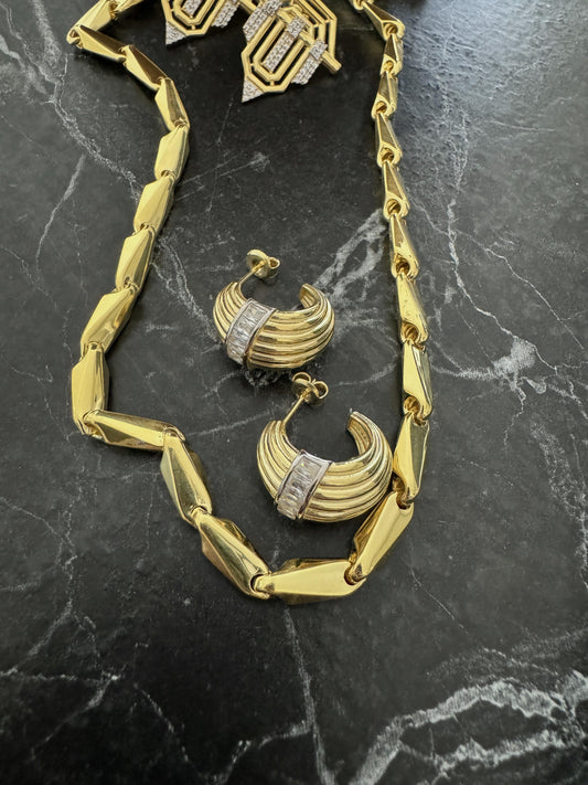 Komple Taşlı Dikdörtgen Küpe