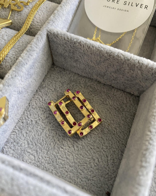 Taşlı Dikdörtgen Küpe
